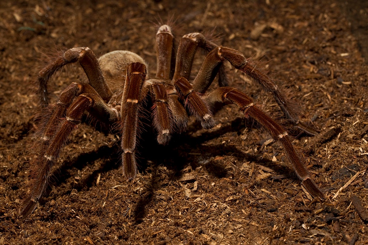Many people are frightened of tarantulas, but these large spiders try to avoid any contact with us. Female giant bird-eating tarantulas spend most of their time in the comfort of their own burrow. Without needing to leave home, they attract males just by putting out a “welcome mat” woven from her own silk. When a male comes to call, they may take a twirl. That’s because tarantulas mate in an unusual dance, with precisely timed leg movements and maneuvers that look something like a wrestling match. In order to mate, the male must get the female to raise her abdomen, and he must make all the right moves. If he doesn’t, he’ll become her next meal.